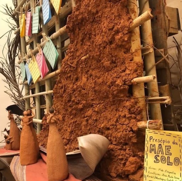 Montagem independente no Museu Histórico e Cultural de Jundiaí – Solar do Barão – como parte da exposição comunitária de presépios do museu, realizada em dezembro de 2022. Com esculturas em barro cozido de João Paulo Souza e versos de Tião Simpatia transformados em cordel, o Presépio da Mãe Solo propôs uma reflexão sobre os diversos arranjos familiares possíveis em nossa sociedade, os quais, não raro, sempre se fazem em torno de mulheres sobre as quais recai a alimentação, a manutenção do lar, saúde e higiene, além do carinho, dos afetos e de todas as formas de cuidado, – tantas vezes sem o apoio de uma figura masculina e frequentemente transcendendo a maternidade biológica, os laços sanguíneos ou mesmo um útero. A terra, tema intrínseco à taipa, alude ao mais simples, básico e elemental da vida, ou seja, a aquilo que temos a impressão de estar desde sempre no mundo, quando aqui chegamos.